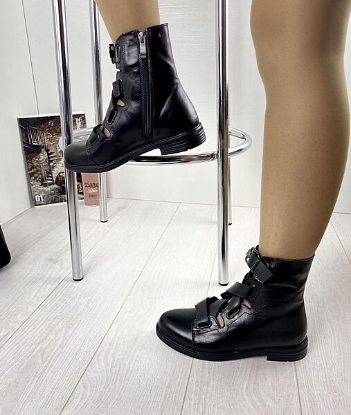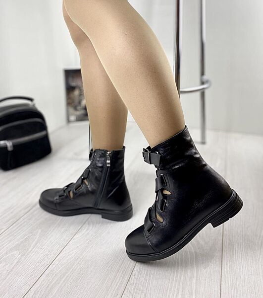 Ботинки женские OLLI K-23-1055 чёрные весна-осень кожа натуральная