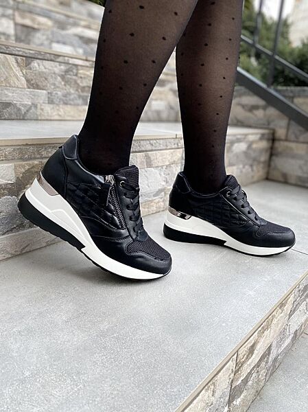 Сникерсы женские STILLI 106-1 чёрные весна-осень эко-кожа