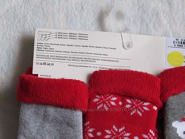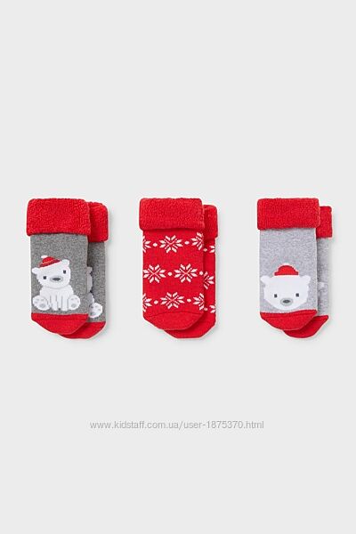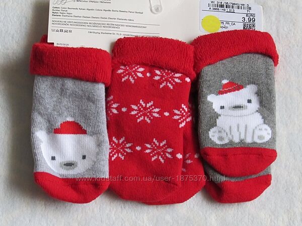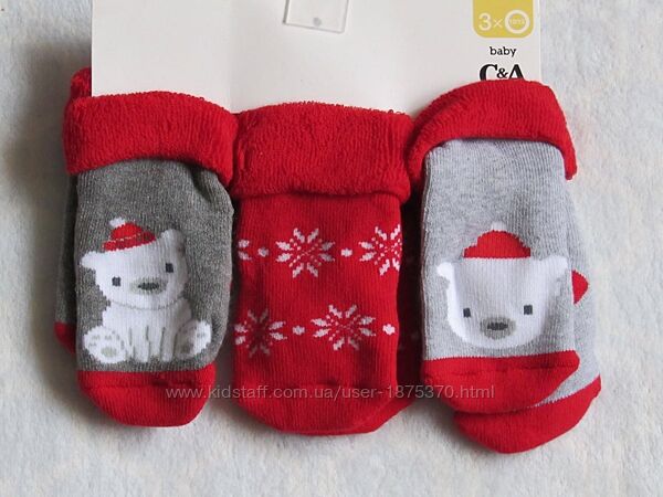 Носки носочки махровые новогодние детские раз.12-13, 14-15 от c&a новые