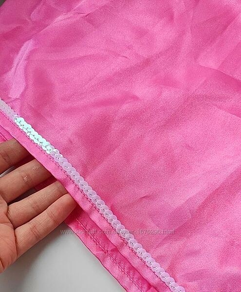 Ткань - атлас, декор - паейтки, снежинки с красивым перламутровым переливом.