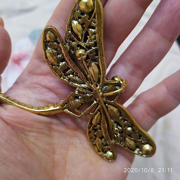 Модные броши в виде стрекозы с кристаллами. Все камни расположены ровно и аккуратно. Размер 9*7,5 см -достаточно крупная она. В деле - просто шикарная - яркая, привлекает внимание. Можно подвесить на цепочку через специальное отверстие. Большая, тяжёлая, красивенная!