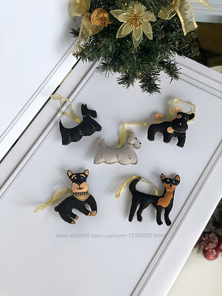 Подробное описание: Ёлочные игрушки, набор собак 5 штук , hand made