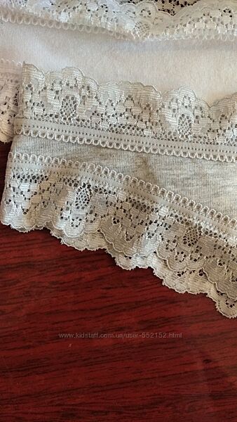 Классные трусики известного европейского бренда..Очень мягкая и приятная к телу ткань. Хорошо тянутся.Кружева сверху и снизу.Сзади полустрингами. Состав:95% хлопок,5% эластан.