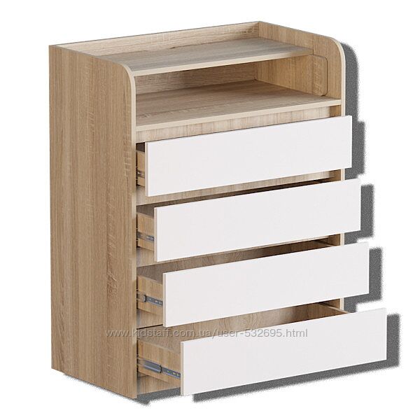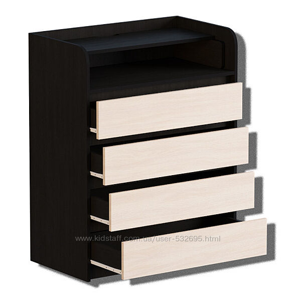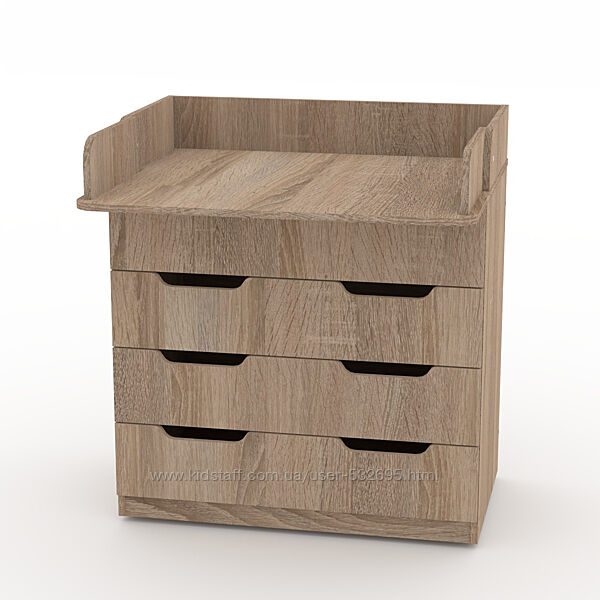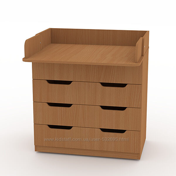 Виробник фабрика ЕВЕРЕСТ (Україна).Комод це незамінний елемент корпусних меблів для кожного будинку, використовуються практично в кожній кімнаті. Є універсальним елементом меблів, який використовується для зберігання білизни та інших домашніх речей. Комоди мають 4 висувні скриньки на роликових направляючих столик для пеленання.