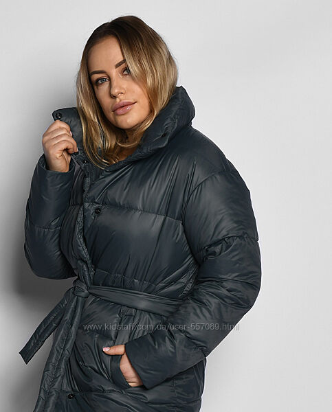 Демисезонная женская Куртка 8931 X-Woyz Р-ры 42 44 46 48Стьобана куртка-пальто з поясом. Виконана з плащової тканини та утеплена пухом.