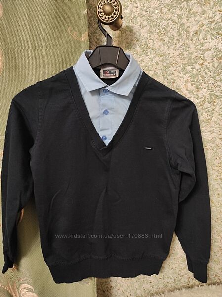 Фото 1-3: Обманка на хлопчика у чудовому стані, зріст 116, на 6-8 років колір синій з голубим, чудова якість, ідеально в школуЗаміри: Довжина по спині - 51,0см; ширина ПОГ - 39,0 см;