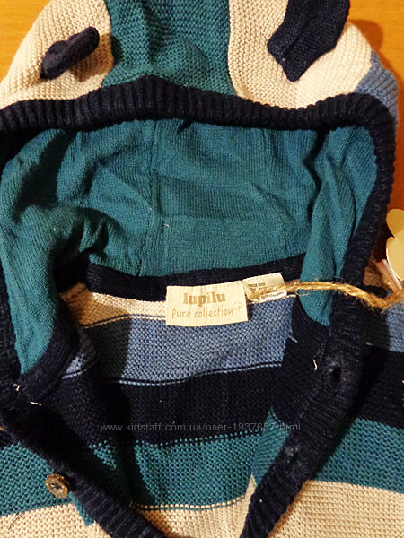 Новая вязаная кофточка с капюшоном от немецкого бренда LUPILU® Изготовлена из чистого органического хлопка Вязаная кофточка на пуговицах Двойной теплый капюшон Мягкая, приятная к телу