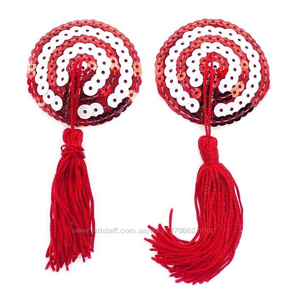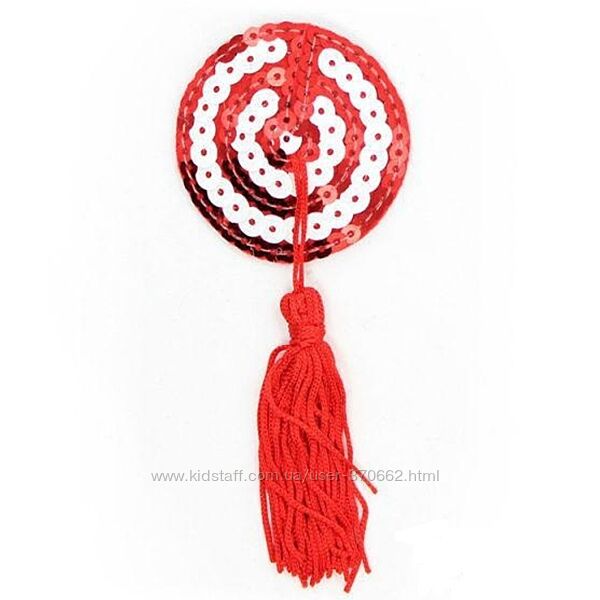 Подробное описание: Червоно-білі стікіні з паєтками та китицями