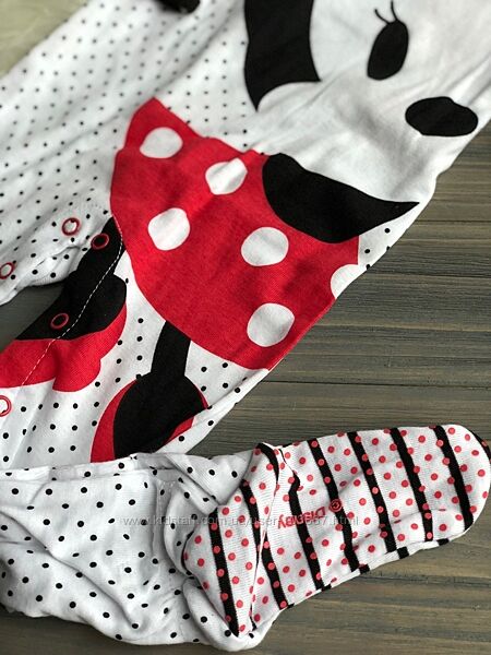 Яркая веселая пижама-человечек с закрытыми ножками, из мягкого приятного трикотажа, с принтом Минни для малышек.Размер: 18-24М