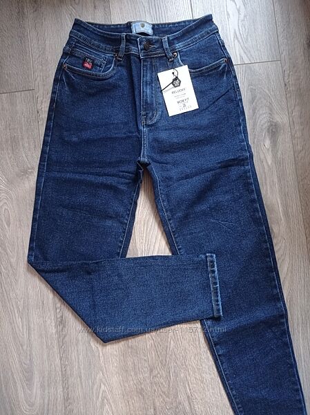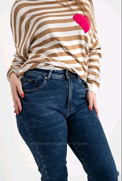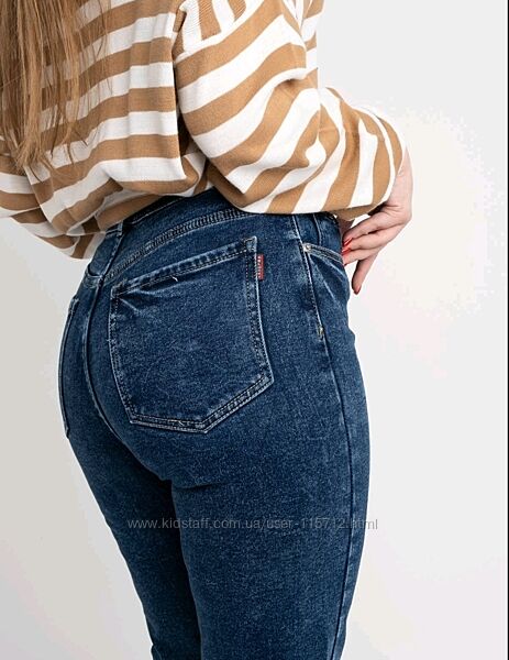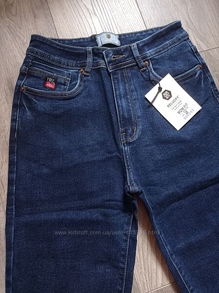 В НАЛИЧИИ RELUCKY Мом полубатальный синий стрейчевый №0609*Полномерный.* На фото девушка