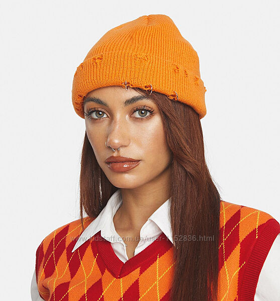 Укороченная шапка монатика с рваностями и пирсингом. Мужская женская шапка рыбака мини биниПол: унисекс