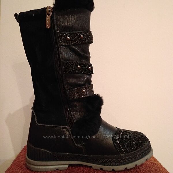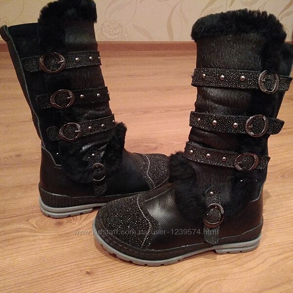 Зимние кожаные сапоги на цигейке для девочек