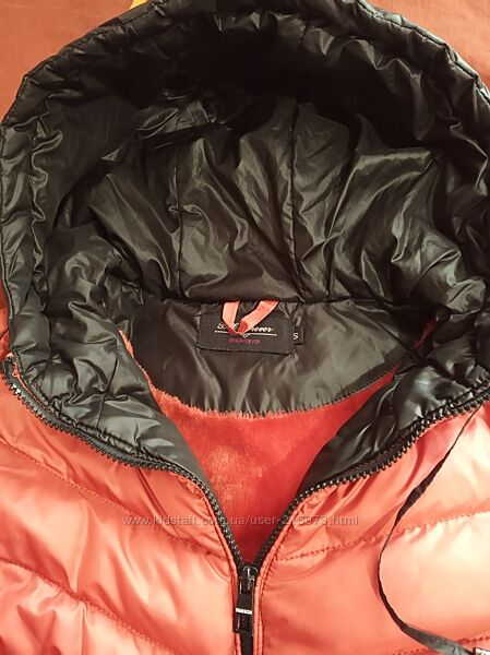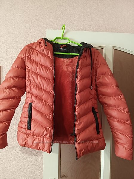 Женская куртка, в отличном состоянии, подойдёт на размер 42-44, рукав от плеча 62, ширина под руками 48 (учитывайте что она толстенькая), мне на ОГ 85 и на ОТ 74 на тонкий гольф немножечко уже впритык, носить могу, но свитер уже не влезет. Длинна по спинке по центру от шва капюшона 61. Чем то утеплена, чесно сказать что за наполнитель не знаю, но не синтепон, не силикон и не холлофайбер, подкладка искусственный мех.Как вариант на холодную осень, зимой предпочтительнее куртки длиннее.