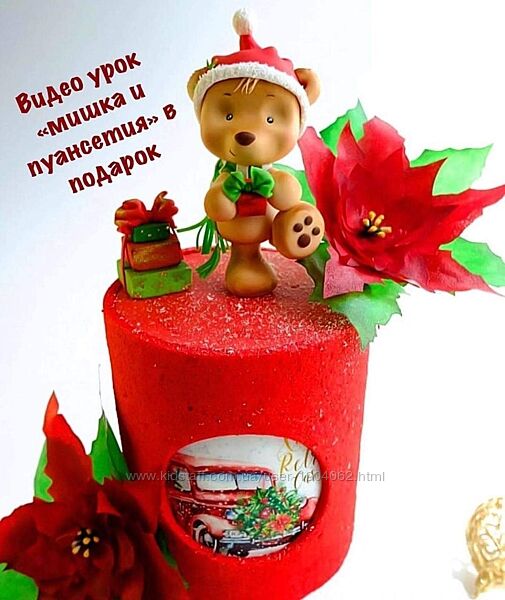 Торт елочка 57 минут видеоурок +ещё один видео мк по лепке новогоднего мишки и вафельного цветка пуансетия.