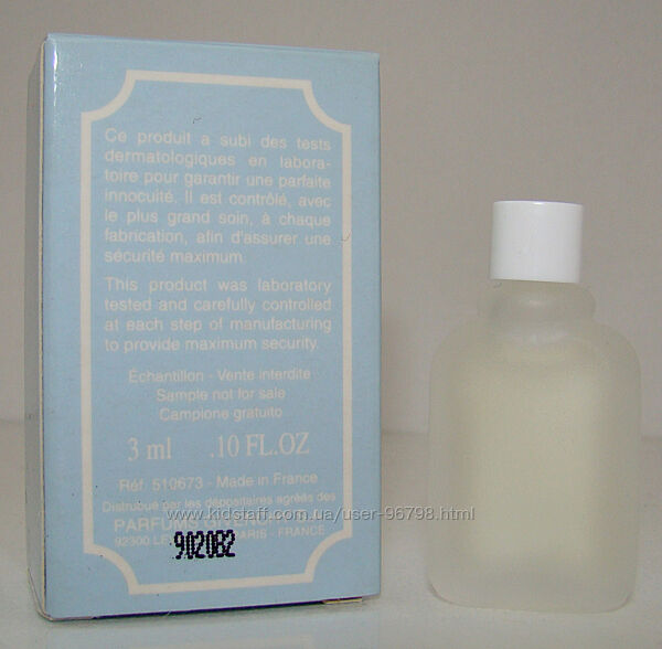 Концентрація: eau de senteur sans alcool ( ароматизована вода без спирту) . Сплеш (не спрей).Об`єм : 3 мл. Не використовувались.