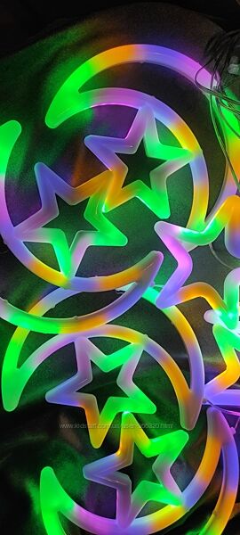 Подробное описание: Гірлянда штора - Зірки , місяць 3D, 30,8м , мульті
