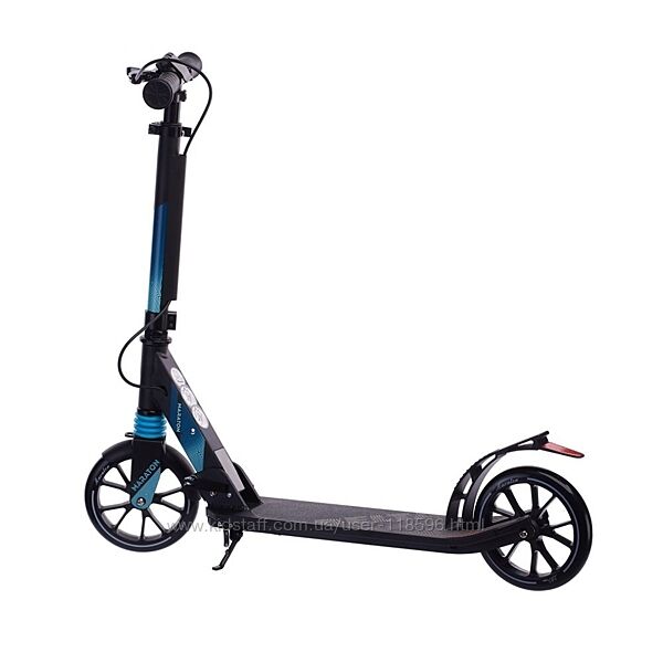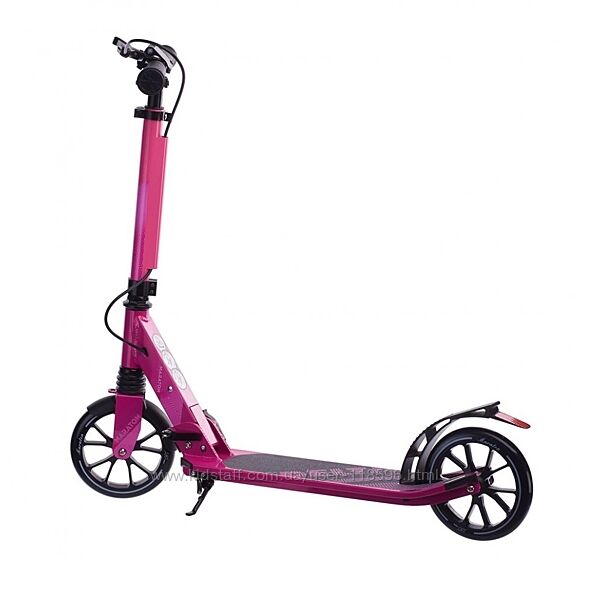 Данная модель предназначена для детей в возрасте от 4 лет и весом до 80 кг. Компактная дека обеспечивае лёгкость и удобство маневрирования самокатом.Скутер оснащен передним амортизатором , что в совокупности с 180 мм колесами шириной 30 мм и специальным полиуретановым покрытием сглаживает неровности дороги. В колесах используются подшипники стандарта ABEC 9. Ручной тормоз, позволяющий не только выполнять эффективное торможение, но и по настоящему украшающий самокат. Тросик тормоза, в отличие от многих аналогов, проведен через специальные каналы в рулевой стойке и деке и не мешает езде.Кроме тормоза в самокате применен привычный ножной тормоз-крыло на заднем колесе, который дополнительно оснащен брызговиком с красным светоотражающим элементом.