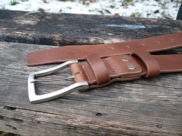 Ремень из кожи растительного дубления с матовым покрытием на лицевой поверхности (производство Италии), цвет коричневый-орех. Кожа мягкая и мясистая. Обратная сторона полированная, урез обработан средством tokonole ( Япония ). Длина 1170 мм (без учета пряжки, ), ширина 40 мм, толщина 3 мм. Пряжка IDAM ( Франция ) с покрытием никель-сатин. Пряжка закреплена вощеной нитью galaces 0,55 мм, запряжник фиксируется ременными винтами. Ручная работа. Цена 670 грн.