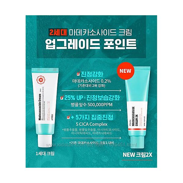 Удосконалений крем із мадекасоссидом від APieu Madecassoside Cream 2XУ 2 рази підвищено вміст мадекасоссида (2,000 ppm), порівняно з попередньою версією. Крем ще більш ефективно зміцнює захисний барєр шкіри і заспокоює подразнену чутливу шкіру.