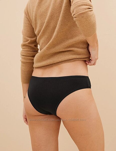 В наявності розмір 10(38), 12(40) 14(42)Ці трусики з високим вмістом бавовни – відмінний вибір для повсякденного носіння. Бразильська форма з вирізом на спині та заниженою талією на стегнах. Додано розтяг для комфорту протягом усього дня. П´ять комплектів, кожен з яких прикрашений бантом на поясі та мереживним оздобленням для надання жіночності. Колекція M&S: універсальні моделі сучасних форм з унікальними грайливими деталями.