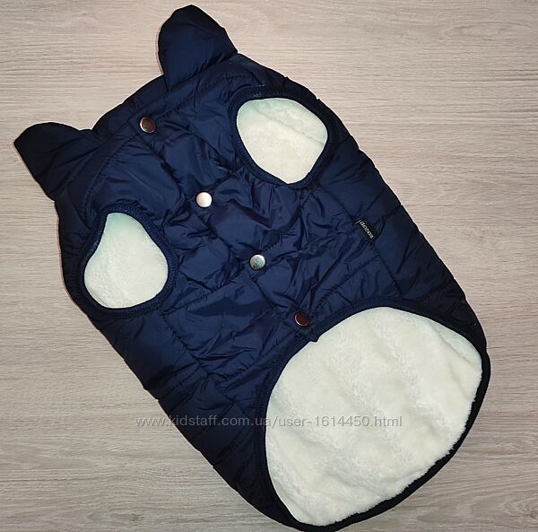 Теплая жилетка для любимых булочек! Снаружи болонья , внутри утеплитель + искусственный мех. Качественная, надежно защитит от мороза и ветра. 4 кнопочки на груди. Отверстие для поводка на спинке. Воротник-стойка 6 см. Цвет - красный, темно-синий, бежевый, оранжевый. Отлично подойдет для французского бульдога, мопса, бигля, спаниеля. Сезон - осень, зима.