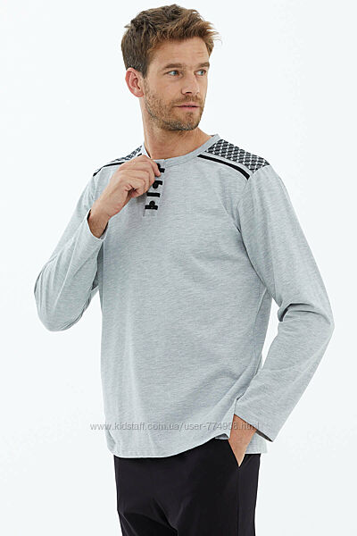 Чоловіча піжама Sementa складається з поло з довгим рукавом и штанів на гумці. Поло має прямий вільний крій, по бокам внизу невеликі розрізи. Ворот напівкруглий застібається на три гудзики. Піжама однотона з рівного бавовняного трикотажу, ж вставки на плечах и бейці под гудзиками з м´якого в´язаного трикотажу. Рукава без манжет. Нижня часть это штани на гумці. Низ штанів також без манжет, зверху є бокові кишені. Крій вільний, дещо звужений до низу. Такий тип піжами можна використовувати не тільки для комфортного сну, а й як зручний домашній одяг.Виріб високої якості, турецкого виробника SEMENTA, цей комплект может стати чудовим подарунком собі чи близькій людині