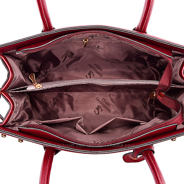 Розпродаж. Жіноча сумка «Перфето» – класична сумка для ділової жінки. Вона має просту ідеальну прямокутну форму. Виглядає сумка престижно і буде доречна, як з класичним, так і з денім стилем. Форма сумки жорстка, але зовнішній матеріал, який емітує натуральну шкіру, візуально згладжує ефект жорсткості. На відміну від м´яких сумок, така форма зручна тим, що сумку можна просто поставити на столик або підлогу, тоді як м´яку краще вішати. Аксесуар має дві пружні ручки та знімний плечовий ремінь. З лицьового боку є невелике тиснення з написом золоченими літерами: SSML & LETHER Fashion. Також є декор у вигляді плаского медальйону на шкіряному шнурку. З боків сумку стягують хлястики на гудзиках у вигляді заклепок. З тильного боку є потайна кишеня на блискавці. Застібається аксесуар на замок блискавку, всередині два основні відділення, розділені відділенням-перегородкою на блискавці. Також всередині є дві навісні кишені для дрібниць і потайна кишеня на блискавці. Знизу на дні є металеві ніжки. Порадуйте себе приємною покупкою.Зовнішні розміри сумки 32х12 см, висота 24 см.
