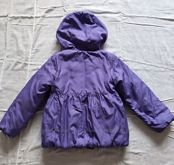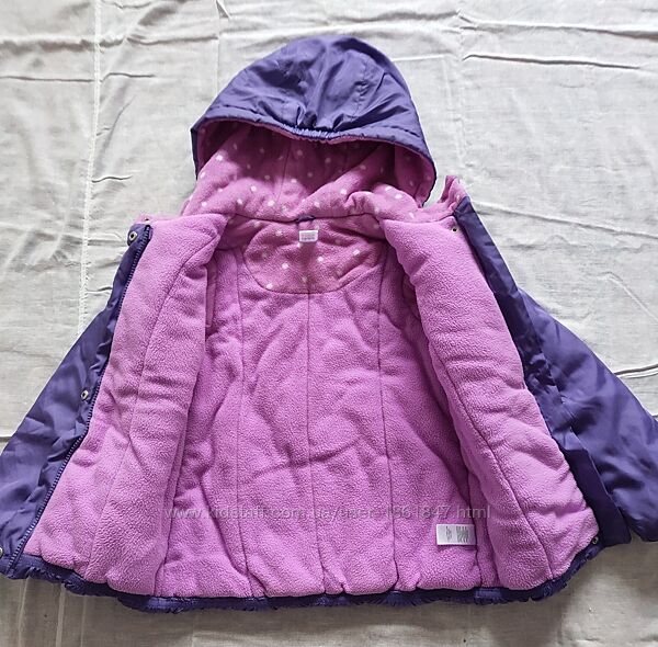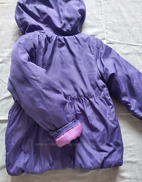 Зимняя куртка для девочки фирмы Carters фиолетового цвета в хорошем состоянии. Внутренняя часть на утеплителе плюс флис. На рукавах резинки, внизу изделия тоже на резинке, так что ветер поддувать не будет. Носили только в садик. После одного ребенка. Дефектов и потертостей нет.Замеры: