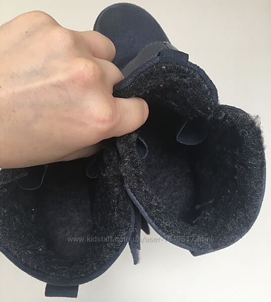 В целом состояние хорошее, как внутри , так и снаружи. Все целое, внутри протертостей и дырок НЕТ. Стельки целые и чистые. Все внешние детали на фото. Объективно: На подошве присутствует определённая стоптанность как естественный физический износ. На носках обуви есть следы чистки замши. Внутренняя выстилка темного цвета и оставляет следы на белом и светлом. Это явно заводской брак, о котором мы узнали уже в процессе использования обуви. Чтобы предотвратить переход цвета нутренней выстилки на колготы дочь пододевала в ботинки тёмные носочки.