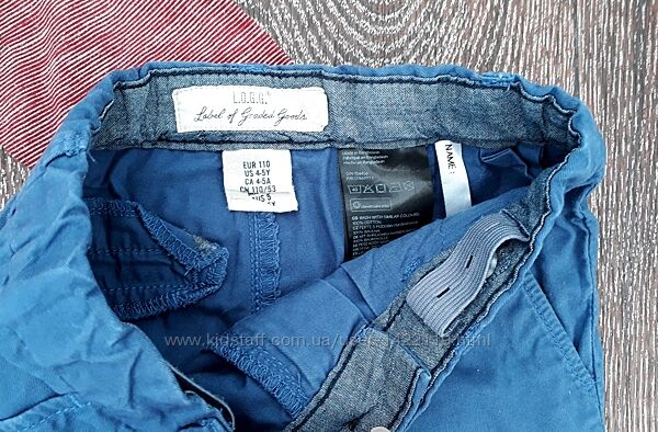 3) Брюки H&M. Состав 100% хлопок. Не плотные. Полуобхват в поясе 27 см, шаговый шов 44 см. В поясе есть резинка для дополнительной регулировки объёма. Полуобхват по низу штанины 10 см. Минимальные следы носки.
