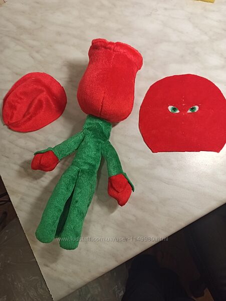 Игрушка выполнена из мех-велюра и набита синтепухом. Каркасная основа позволяет менять положение головы, ручек и ножек Розы.