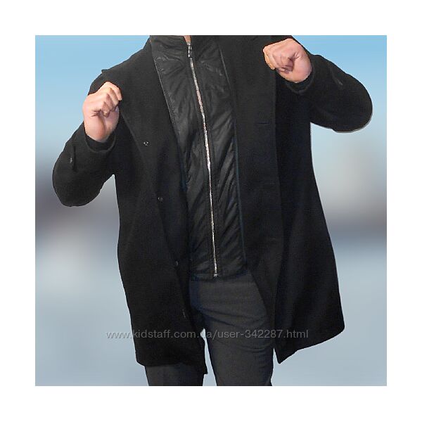 Размер 54 - 56.На рост 180 - 187см.Румыния. Новое(бирка стик).70% шерсти натуральной. Съёмная манишка с металлической молнией. Фасон чуть притален. Лёгкое не утеплённое .Чёрного цвета .Брендовый производитель. Европейский пошивДЛИНА ПО СПИНЕ ОТ ВОРОТА - 93см
