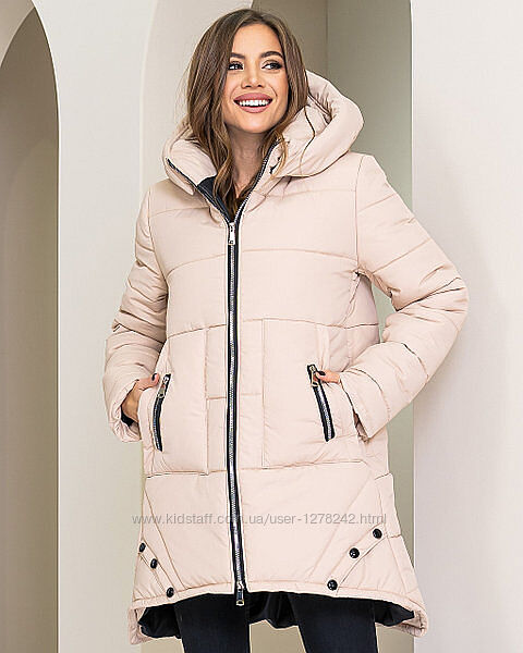 Колекція 2021-2022!!!Куртка парку жіноча, подовжена, асиметрія, На блискавці, з капюшоном і кишенями.