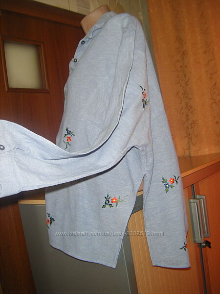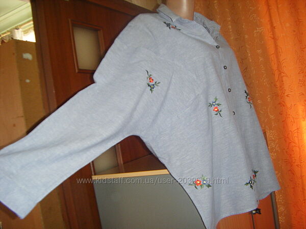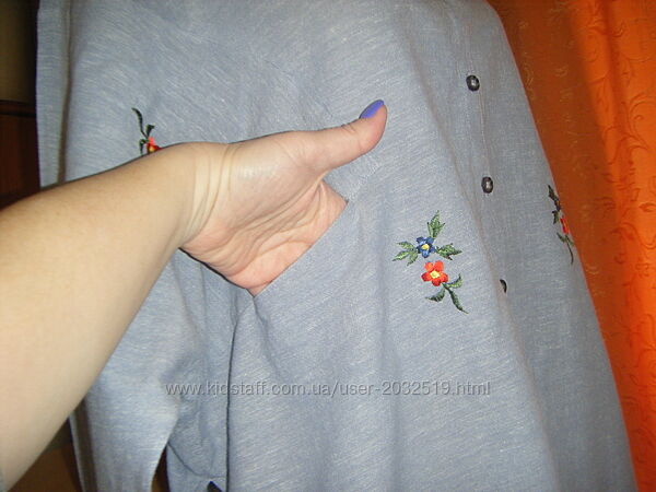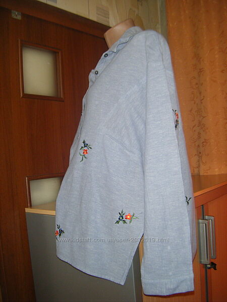 Подробное описание: Шикарная рубашка OVERSIZE с вышивкой, хлопок лен, размер L 50 - 16 - 44