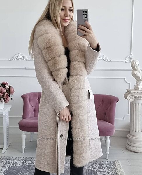 Подробное описание: Роскошное шерстяное пальто с песцом