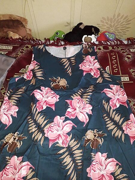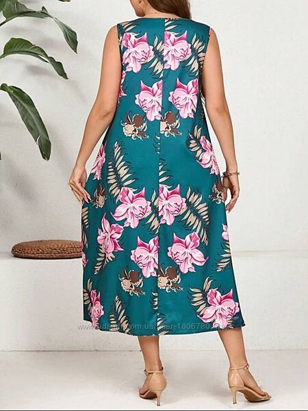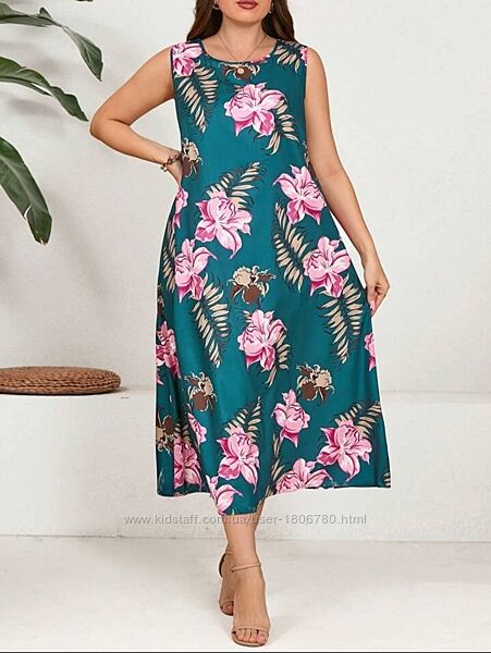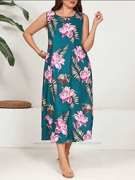 EMERY ROSE Летнее платье больших размеров без рукавов с круглым вырезом и цветочным принтом фирмы Shein. Размер 56 (4XL), подойдет на 58. Камера цвет искажает.Плечо 41 см, длина 134 см, обхват груди 136 см.