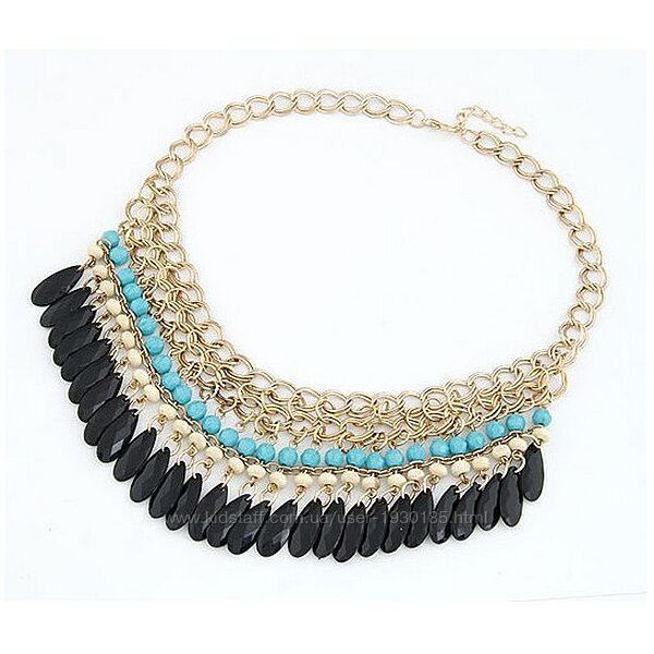 Подробное описание: Распродажа трехцветное колье с золотой цепью бусинами и каплями