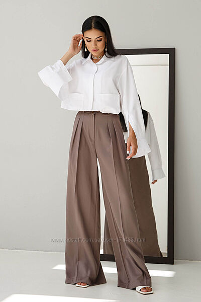 Представляю вашій увазі модні широкі штани-палаццо.Декілька останніх років штани-палаццо не сходять з подіумів і вважаються хітом сезону. Щільна, тепла тканина – чудове рішення для осені. Безперечна новинка - штани-палаццо додають образу жіночності, елегантності, підкреслюють тонку талію, візуально роблять ноги довшими.