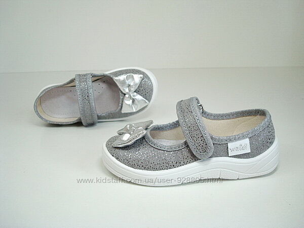 Гарні, святкові, якісні капці тапочки туфлі із сріблястим бантиком Waldi (Валді, Україна) забезпечать Вашій дівчинці комфорт та легкість під час ходьби.