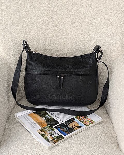 Зручна шкіряна сумка кожана з кишеньками в стилі casual. Італія