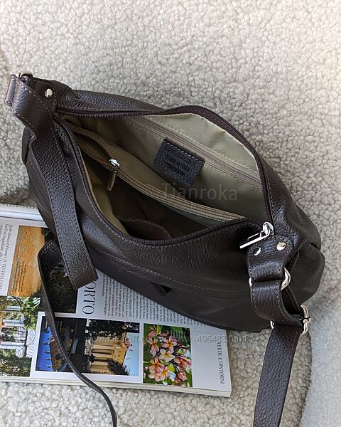 Подробное описание: Зручна шкіряна сумка кожана з кишеньками в стилі casual. Італія