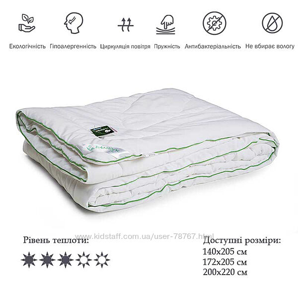 Бамбуковые одеяла ТМ Руно (Украина).Бамбуковое волокно обладает антибактериальными свойствами и противомикробный эффектом. Благотворно воздействует на кожу и мышечные ткани. Благодаря его структуре, обеспечивается отличная микроциркуляция воздуха. Волокно бамбука придает изделию необыкновенную мягкость, легкость. Одеяло из бамбукового волокна прекрасно подойдёт аллергикам, бамбук не вызывает аллергических реакций. Все составляющие одеяла полностью гипоаллергенны и сертифицированы.