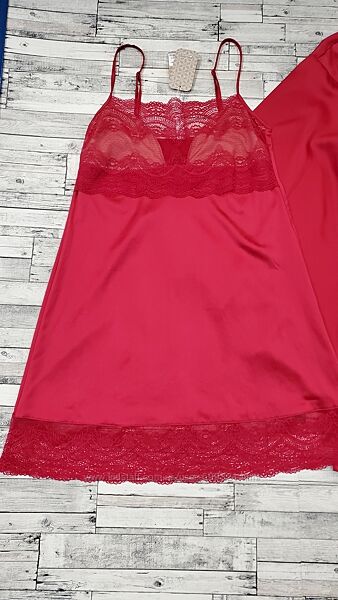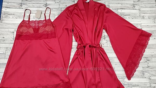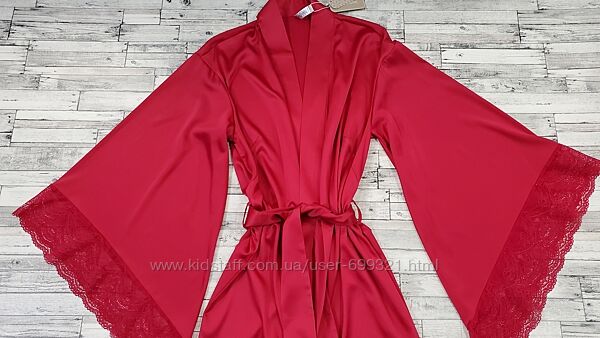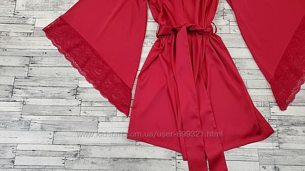 Утонченный короткий халат из сатина с запáхом- длинные рукава-кимоно украшены по низу кружевом