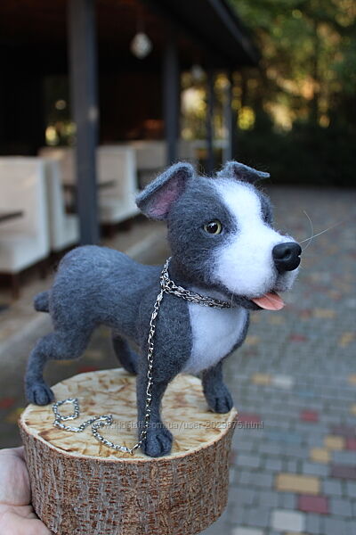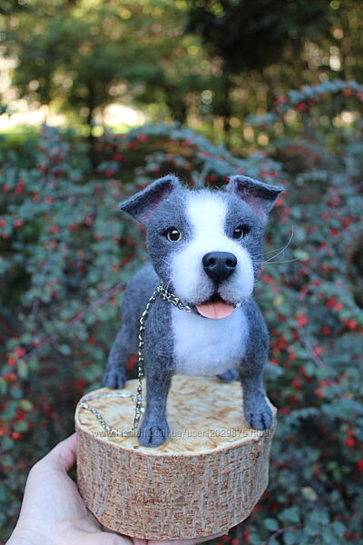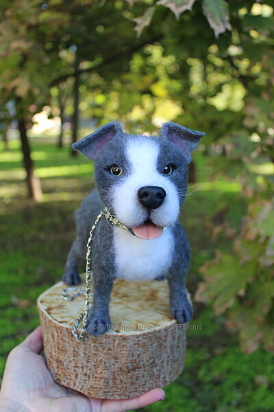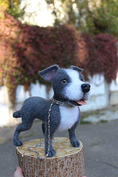 Стаффордширський тер´єр реалістична фігурка собачки іграшка валяна з шерсті. 🐶❤️😊 Висота 19 см, длина 24 см. На каркасі.