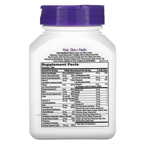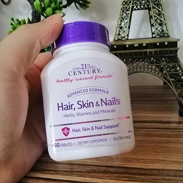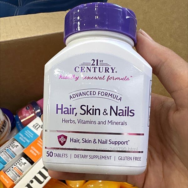 1) Hair, Skin & Nails Волосся, шкіра та нігті, поліпшена формула, США, 50 таблеток21st Century Комплекс для волосся, шкіри та нігтів, США, покращена формула, 50 таблеток