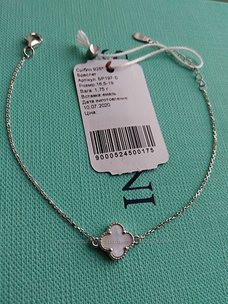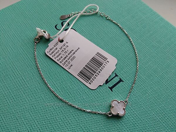 Подробное описание: Женский серебряный браслет ван клиф, клевер, van cleef, белый перламутр