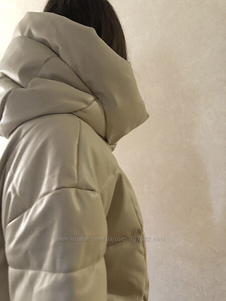 Пальто из эко кожи. Стильное, теплое, водоотталкивающее и не продуваемое. Полномерный М Длина 102см Плечи 57см Рукав приспущенный 57см Пог 61см Глубокий капюшон и высокий ворот