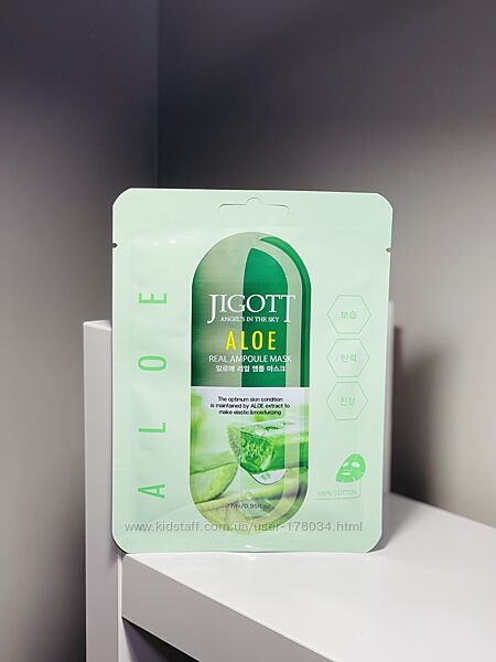 Алоэ — растение с тысячелетней историей. В Древнем Египте оно считалось эликсиром молодости, а Китае его называли «лекарством гармонии». Поскольку в его составе более 150 полезных веществ, его используют не только в медицине, но и косметологии. Ампульная маска «Алоэ» позволит прикоснуться к бесценной сокровищнице природы и дополнить комплексный уход за кожей релаксирующим ритуалом. Да, тканевые маски требуют спокойствия и блаженного ничегонеделания, поэтому использование Jigott Aloe Real Ampoule Mask не только наполнит эпидермис живительной влагой. В составе сбалансированной формулы также содержатся экстракты лотоса, меда, зеленого чая, семян камелии и фильтрат слизи улитки.