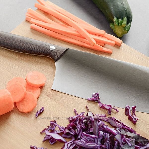 Топорик от бельгийского всемирно известного бренда Berghoff из линейки Redwood изготовлен из высококачественной пищевой нержавеющей стали х30Сr14 - прочной, износостойкой, максимально устойчивым к корозии. Такая сталь не темнеет и не тускнеет со временем при правильном уходе. Рукоятка ножа выполнена из натуральной древесины, и благодаря специальной обработке имеет влагоотталкивающие свойства, не впитывает жир.Структура покрытия не позволяет ножу скользить в руке. Также у рукоятки удобная, эргономичная форма, с выемками для безопасного и удобного захвата. Крепится к лезвию при помощи заклепок. Такой топорик очень удобен для шинковки и нарезки, его широкое лезвие можно использовать и как лопатку, поддевая нарезанные продукты и отправляя их сразу на сковороду или в кастрюлю. Не требует особого ухода, легко чистится. Рекомендуется мыть вручную.
