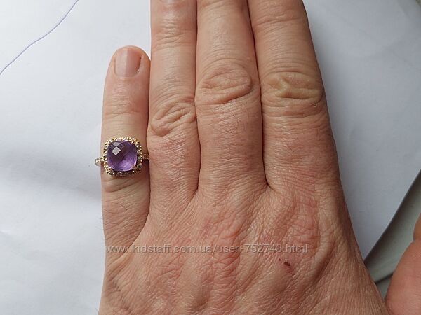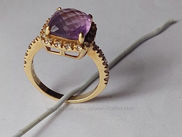 Золотое кольцо 750 пробы с бриллиантами и аметистом
